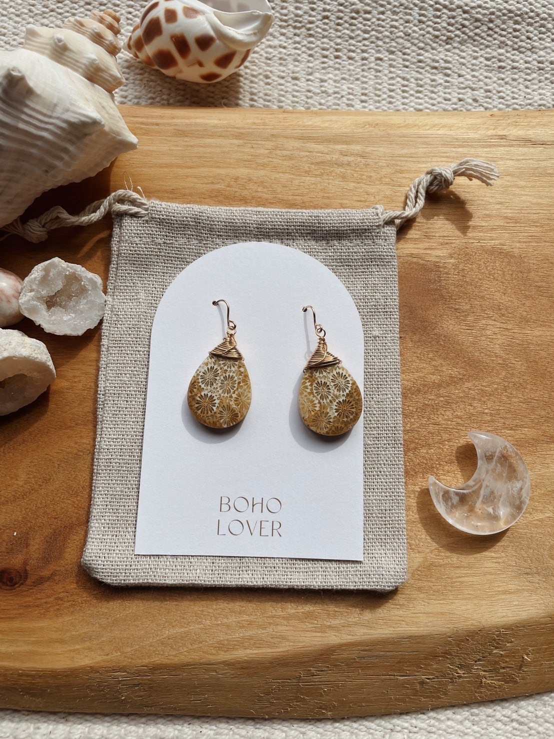 フォッシルコーラルとは、太古の珊瑚が地中で石化した石です。表面には美しい花のような模様があるのが特徴です!