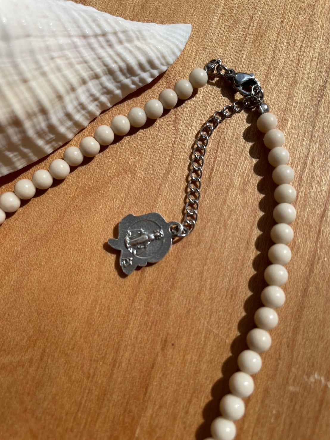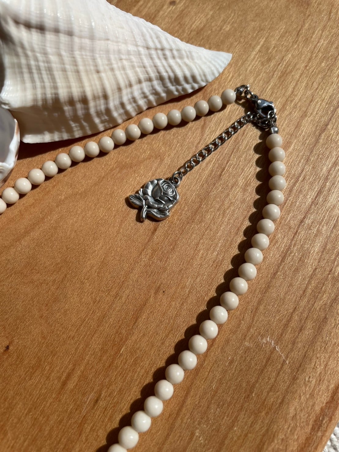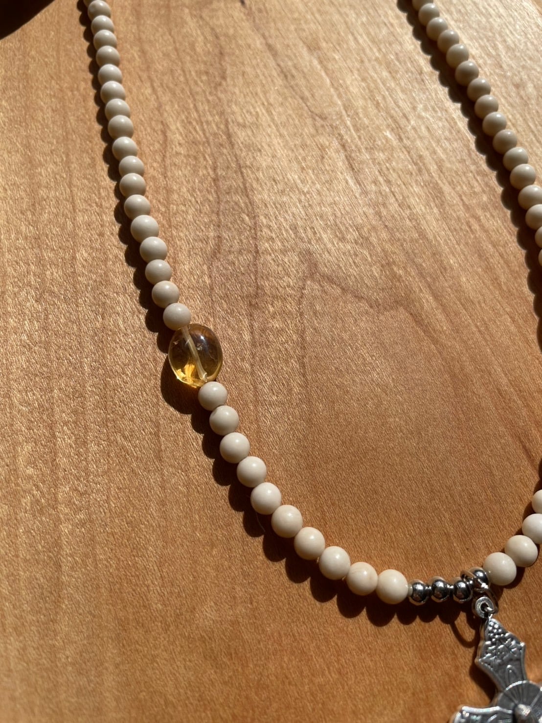 リバーストーンとシトリンの美しいコントラストが魅力のクロスとローズチャームネックレスです。