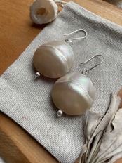 大ぶりなホワイトシェルを使用したslv925ピアスです。美しい光沢を放ちながら、シェルの優雅さを引き立てています。耳元で揺れるこのピアスは、シンプルながら存在感があり、どんなコーディネートにも柔らかく馴染みます。